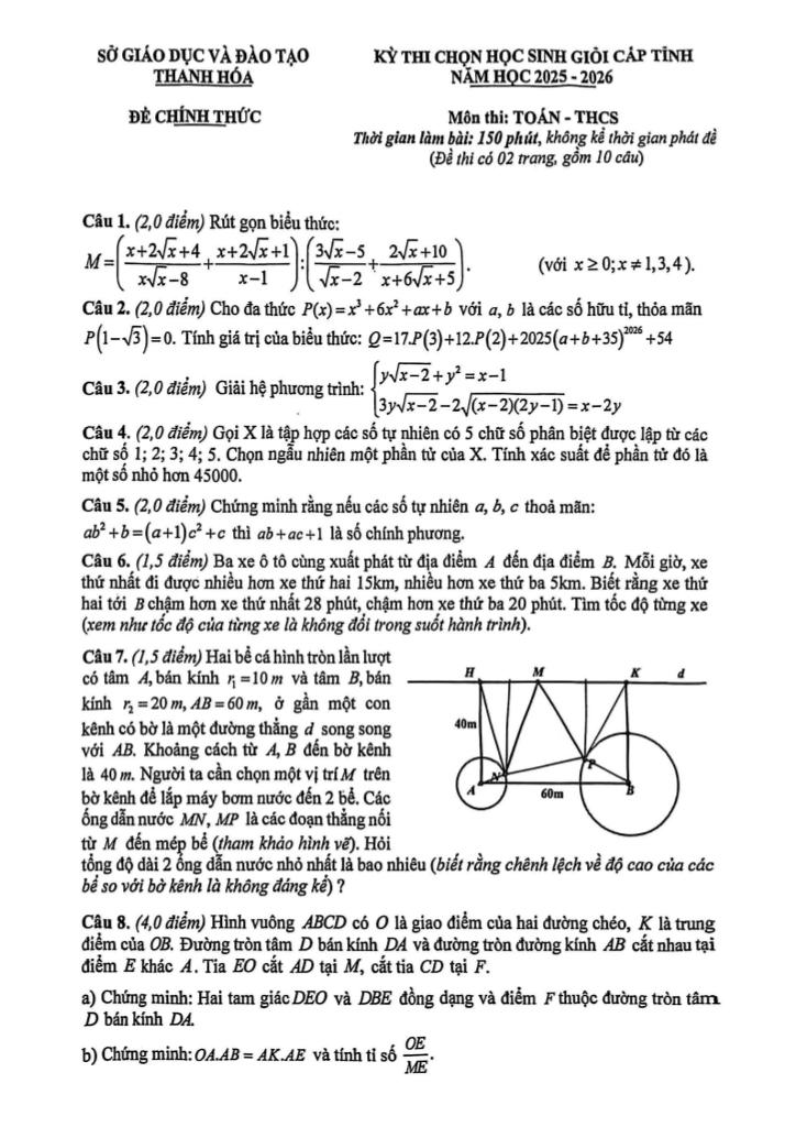 Trích dẫn Đề chọn học sinh giỏi cấp tỉnh Toán THCS năm 2025 – 2026 sở GD&ĐT Thanh Hóa: