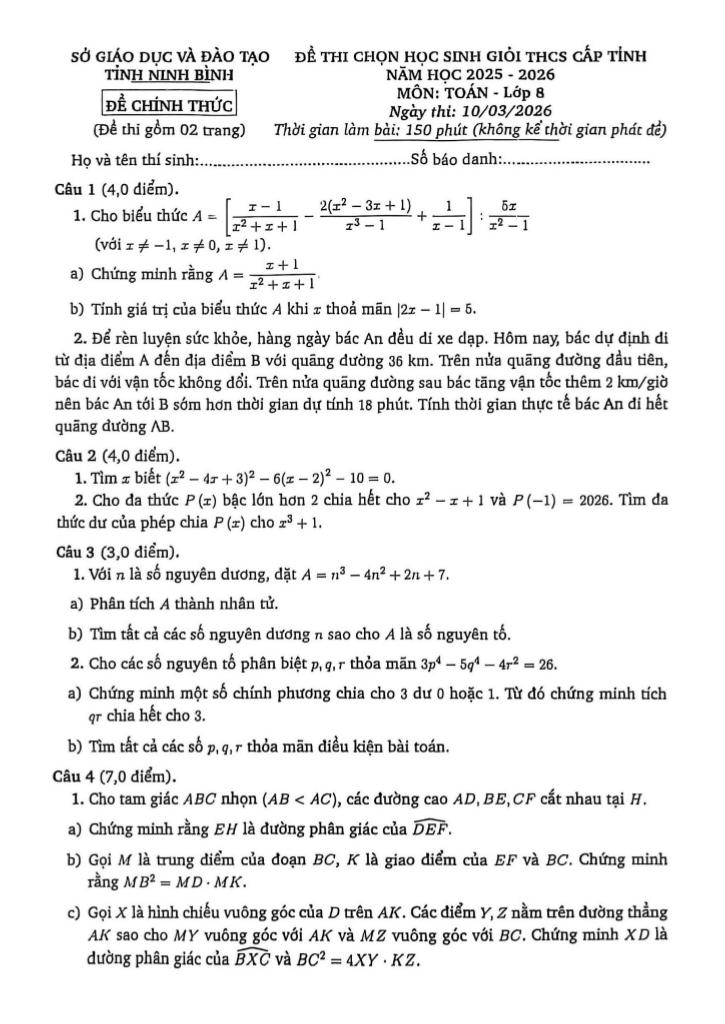 Trích dẫn Đề chọn học sinh giỏi tỉnh Toán 8 năm 2025 – 2026 sở GD&ĐT Ninh Bình: