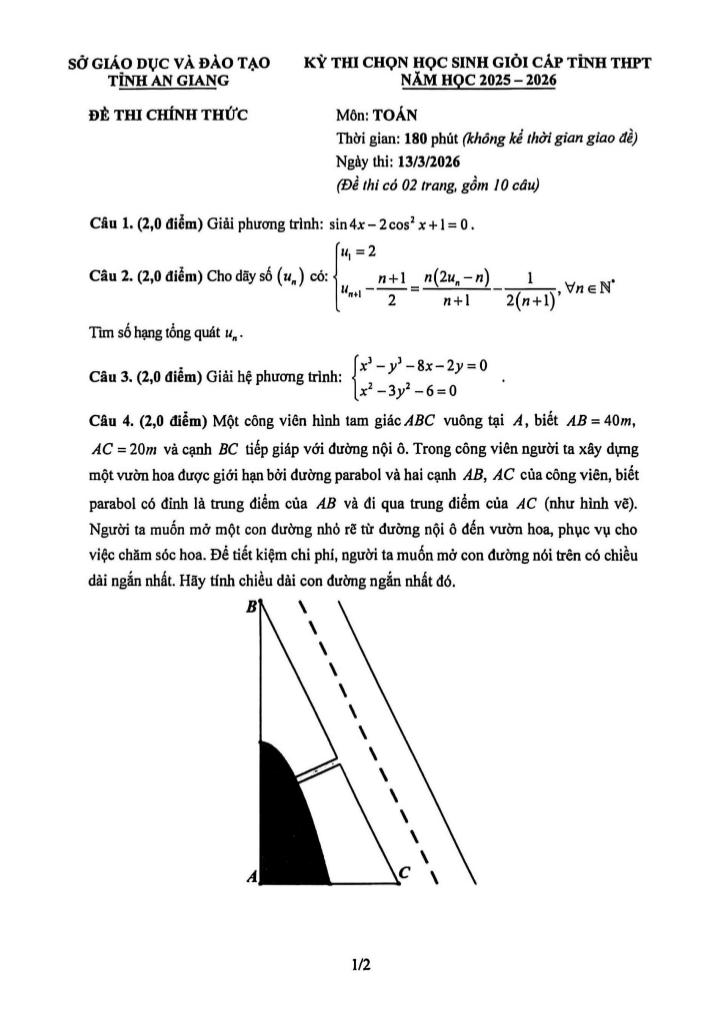 Trích dẫn Đề chọn học sinh giỏi tỉnh Toán THPT năm 2025 – 2026 sở GD&ĐT An Giang: