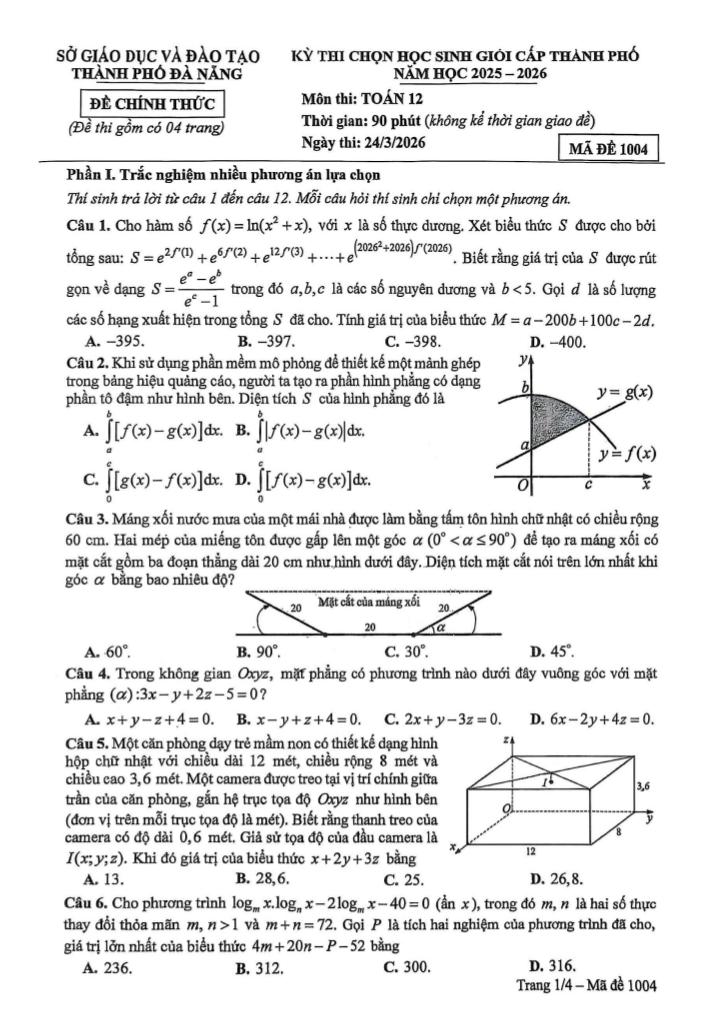 Trích dẫn Đề chọn học sinh giỏi Toán 12 năm 2025 – 2026 sở GD&ĐT Đà Nẵng: