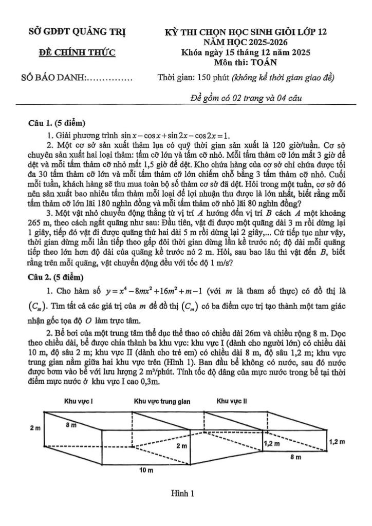 Trích dẫn Đề chọn học sinh giỏi Toán 12 năm 2025 – 2026 sở GD&ĐT Quảng Trị: