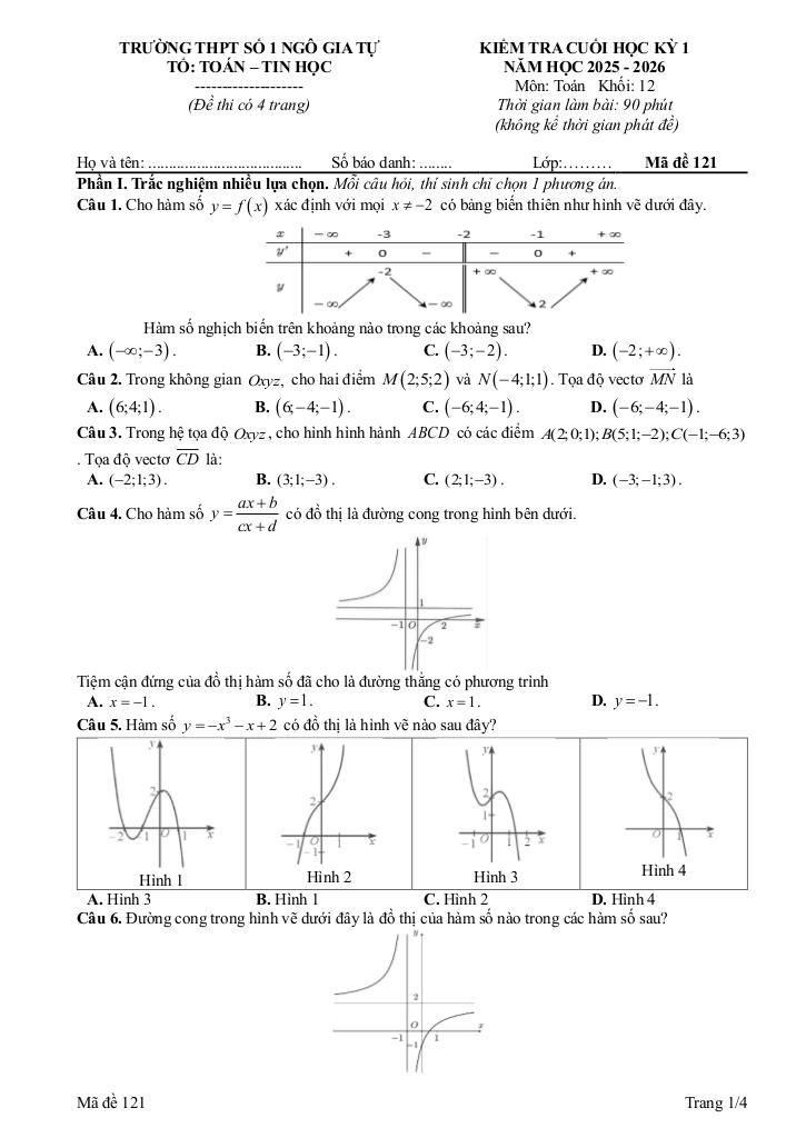 Trích dẫn Đề cuối học kì 1 Toán 12 năm 2025 – 2026 trường THPT Ngô Gia Tự 1 – Đắk Lắk: