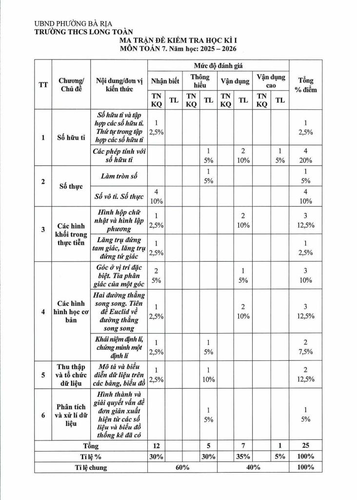 MonToan.com.vn giới thiệu đến quý thầy, cô giáo và các em học sinh đề kiểm tra cuối học kì 1 môn Toán 7 năm học 2025 – 2026 trường THCS Long Toàn, phường Bà Rịa, thành phố Hồ Chí Minh. Kỳ thi được diễn ra vào ngày 23 tháng 12 năm 2025.