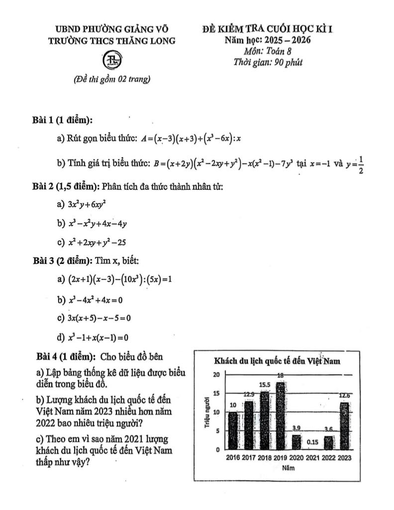 Trích dẫn Đề cuối học kì 1 Toán 8 năm 2025 – 2026 trường THCS Thăng Long – Hà Nội: