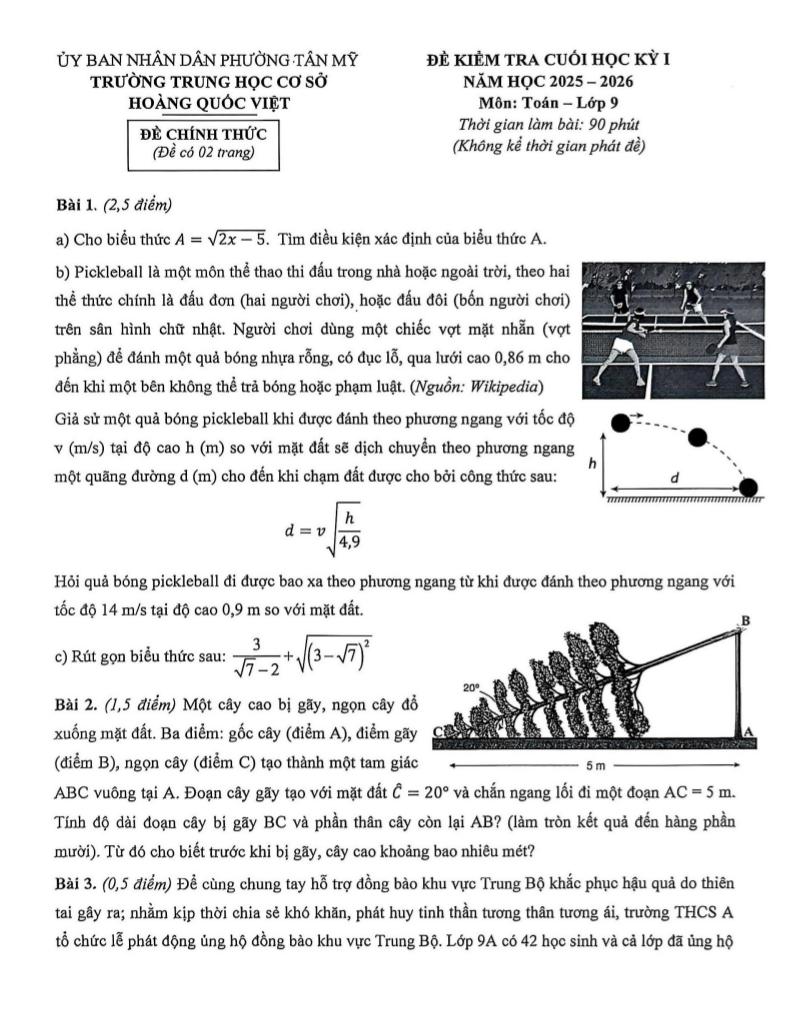 Trích dẫn Đề cuối học kỳ 1 Toán 9 năm 2025 – 2026 trường THCS Hoàng Quốc Việt – TP HCM: