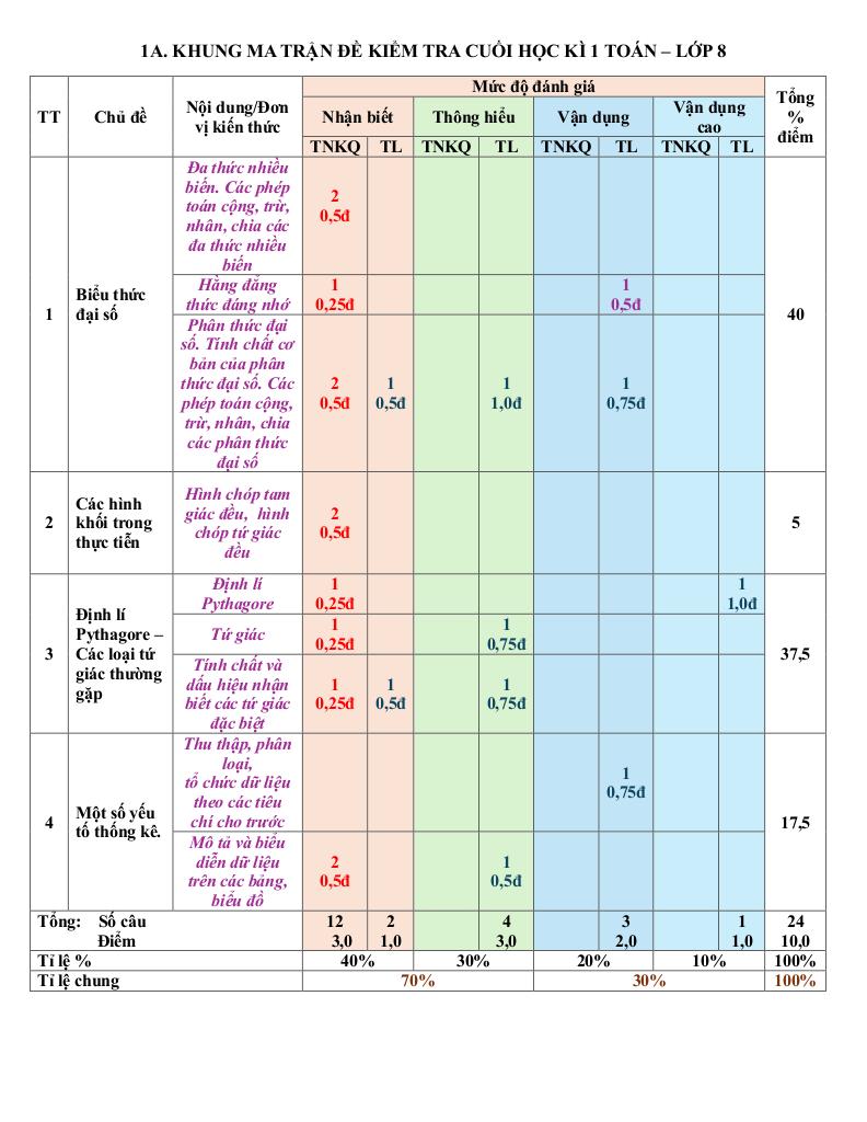 Ma trận Đề cuối kì 1 Toán 8 năm 2025 – 2026 trường THCS Phạm Đình Hổ – TP HCM: