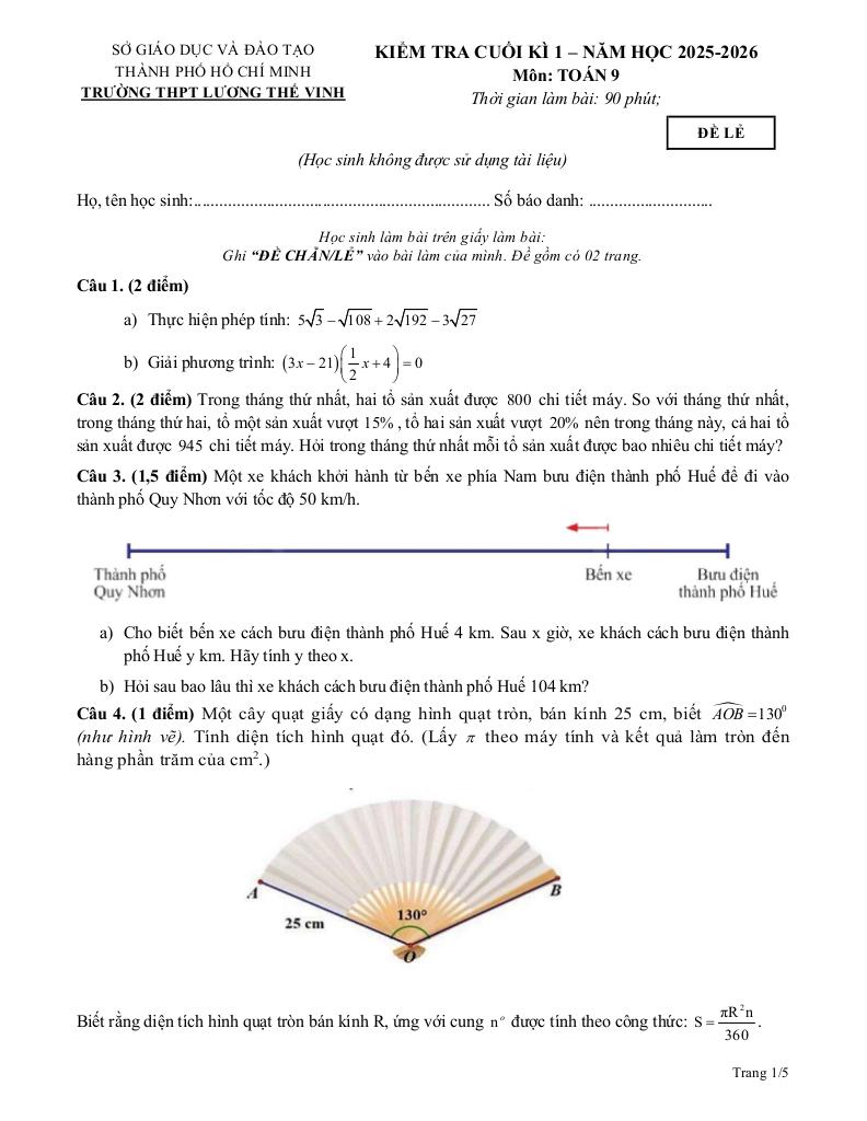Trích dẫn Đề cuối kỳ 1 Toán 9 năm 2025 – 2026 trường THPT Lương Thế Vinh – TP HCM: