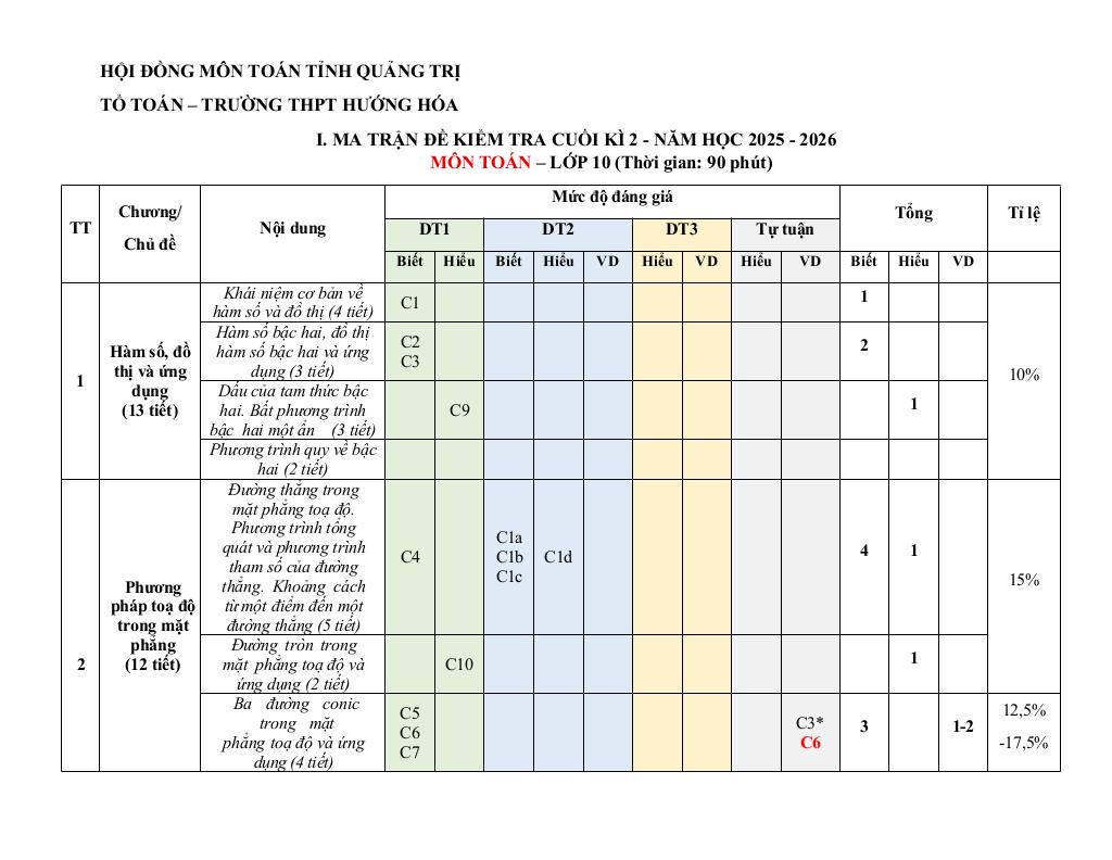 MonToan.com.vn giới thiệu đến quý thầy, cô giáo và các em học sinh đề cương ôn tập cuối học kì 2 môn Toán 10 năm học 2025 – 2026 trường THPT Hướng Hóa, tỉnh Quảng Trị.