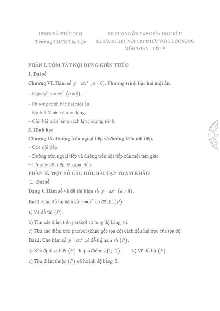 MonToan.com.vn giới thiệu đến quý thầy, cô giáo và các em học sinh đề cương ôn tập giữa học kì 2 môn Toán 9 năm học 2025 – 2026 trường THCS Thọ Lộc, xã Phúc Thọ, thành phố Hà Nội.