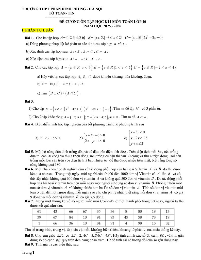 Quý thầy cô và học sinh đang tham khảo đề cương học kì 1 toán 10 năm 2025 – 2026 trường thpt phan đình phùng – hà nội, bộ đề thi được xây dựng bám sát chuẩn toán cập nhật nhất. Cấu trúc đề bảo đảm độ phủ kiến thức đồng đều, mức độ câu hỏi được cân chỉnh từ nhận biết đến vận dụng cao, phù hợp kiểm tra toàn diện năng lực. Hãy khai thác triệt để tài liệu này để đánh giá chính xác trình độ hiện tại và tối ưu chiến lược luyện thi của bạn.