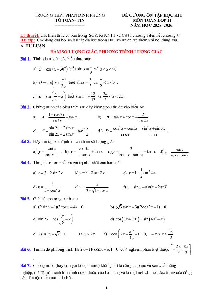 Quý thầy cô và học sinh đang tham khảo đề cương học kì 1 toán 11 năm 2025 – 2026 trường thpt phan đình phùng – hà nội, bộ đề thi được xây dựng bám sát chuẩn toán math cập nhật nhất. Cấu trúc đề bảo đảm độ phủ kiến thức đồng đều, mức độ câu hỏi được cân chỉnh từ nhận biết đến vận dụng cao, phù hợp kiểm tra toàn diện năng lực. Hãy khai thác triệt để tài liệu này để đánh giá chính xác trình độ hiện tại và tối ưu chiến lược luyện thi của bạn.
