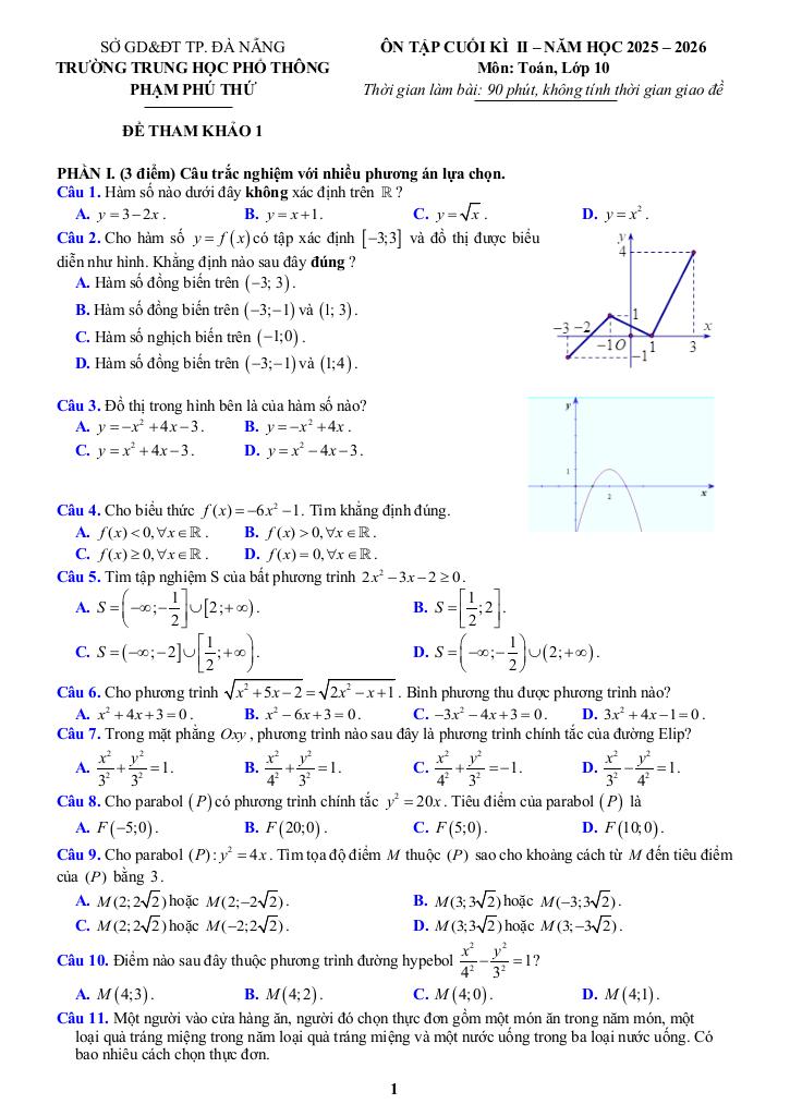 MonToan.com.vn giới thiệu đến quý thầy, cô giáo và các em học sinh đề cương ôn tập kiểm tra cuối học kì 2 môn Toán 10 năm học 2025 – 2026 trường THPT Phạm Phú Thứ, thành phố Đà Nẵng.