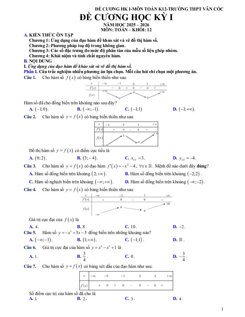 Quý thầy cô và học sinh đang tham khảo đề cương học kỳ 1 toán 12 năm 2025 – 2026 trường thpt vân cốc – hà nội, bộ đề thi được xây dựng bám sát chuẩn toán cập nhật nhất. Cấu trúc đề bảo đảm độ phủ kiến thức đồng đều, mức độ câu hỏi được cân chỉnh từ nhận biết đến vận dụng cao, phù hợp kiểm tra toàn diện năng lực. Hãy khai thác triệt để tài liệu này để đánh giá chính xác trình độ hiện tại và tối ưu chiến lược luyện thi của bạn.