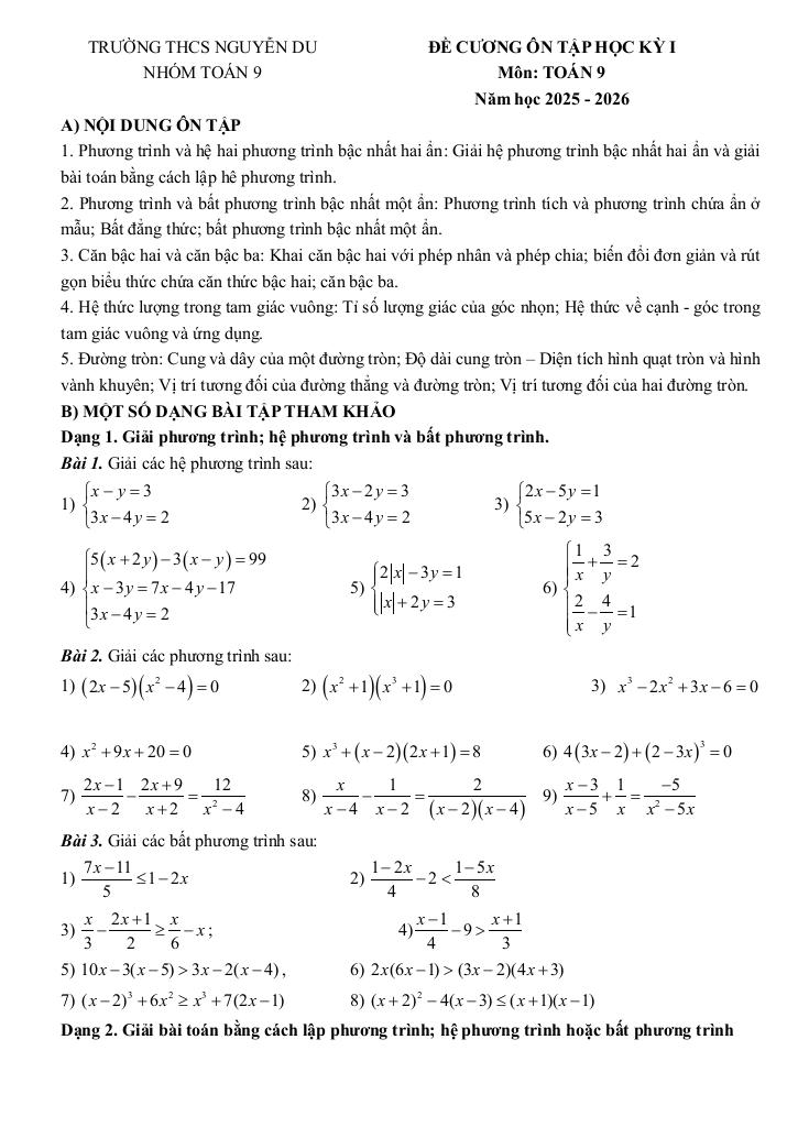 MonToan.com.vn giới thiệu đến quý thầy, cô giáo và các em học sinh đề cương ôn tập cuối học kỳ 1 môn Toán 9 năm học 2025 – 2026 trường THCS Nguyễn Du, thành phố Hà Nội.