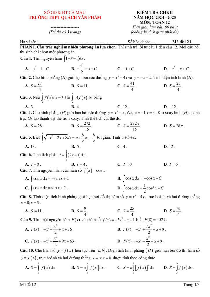Quý thầy cô và học sinh đang tham khảo đề ghk2 toán 12 năm 2024 – 2025 trường thpt quách văn phẩm – cà mau, bộ đề thi được xây dựng bám sát chuẩn toán cập nhật nhất. Cấu trúc đề bảo đảm độ phủ kiến thức đồng đều, mức độ câu hỏi được cân chỉnh từ nhận biết đến vận dụng cao, phù hợp kiểm tra toàn diện năng lực. Hãy khai thác triệt để tài liệu này để đánh giá chính xác trình độ hiện tại và tối ưu chiến lược luyện thi của bạn.
