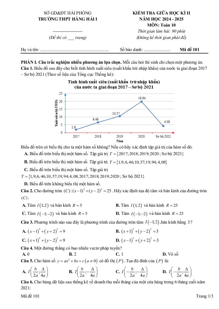 Trích dẫn Đề giữa học kì 2 Toán 10 năm 2024 – 2025 trường THPT Hàng Hải 1 – Hải Phòng: