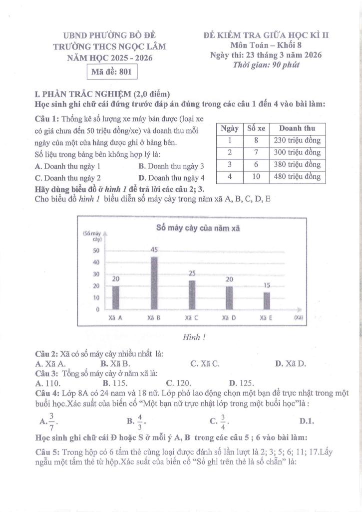 Trích dẫn Đề giữa học kì 2 Toán 8 năm 2025 – 2026 trường THCS Ngọc Lâm – Hà Nội: