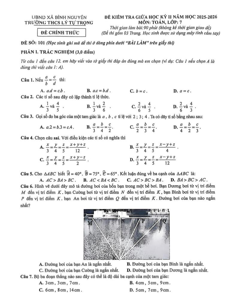Trích dẫn Đề giữa học kỳ 2 Toán 7 năm 2025 – 2026 trường THCS Lý Tự Trọng – Phú Thọ: