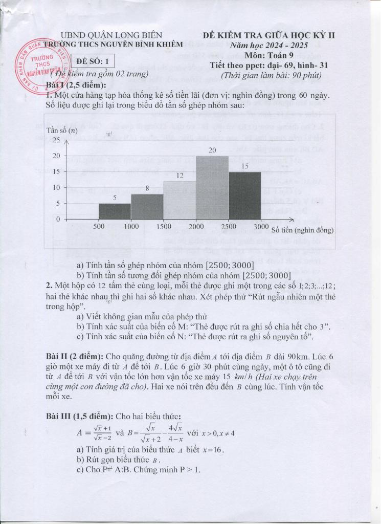 MonToan.com.vn giới thiệu đến quý thầy, cô giáo và các em học sinh đề kiểm tra giữa học kỳ 2 môn Toán 9 năm học 2024 – 2025 trường THCS Nguyễn Bỉnh Khiêm, quận Long Biên, thành phố Hà Nội.