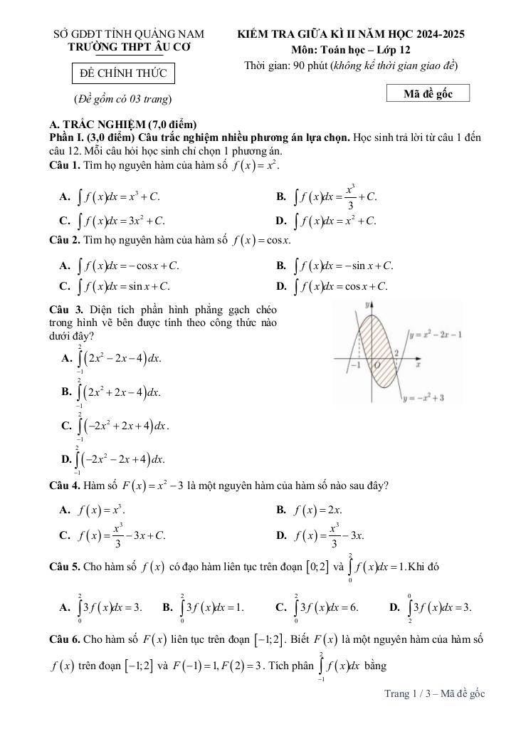 Bạn đang khám phá nội dung đề giữa kỳ 2 toán 12 năm 2024 – 2025 trường thpt âu cơ – quảng nam trong chuyên mục toán 12 trên nền tảng tài liệu toán. Được biên soạn chuyên sâu và bám sát chặt chẽ chương trình sách giáo khoa hiện hành, bộ bài tập toán thpt này cam kết tối ưu hóa toàn diện quá trình ôn luyện, củng cố kiến thức Toán lớp 12 cho học sinh THPT, thông qua phương pháp tiếp cận trực quan và mang lại hiệu quả học tập vượt trội, tạo nền tảng vững chắc cho Kỳ thi Tốt nghiệp THPT Quốc gia và hành trang vào đại học.