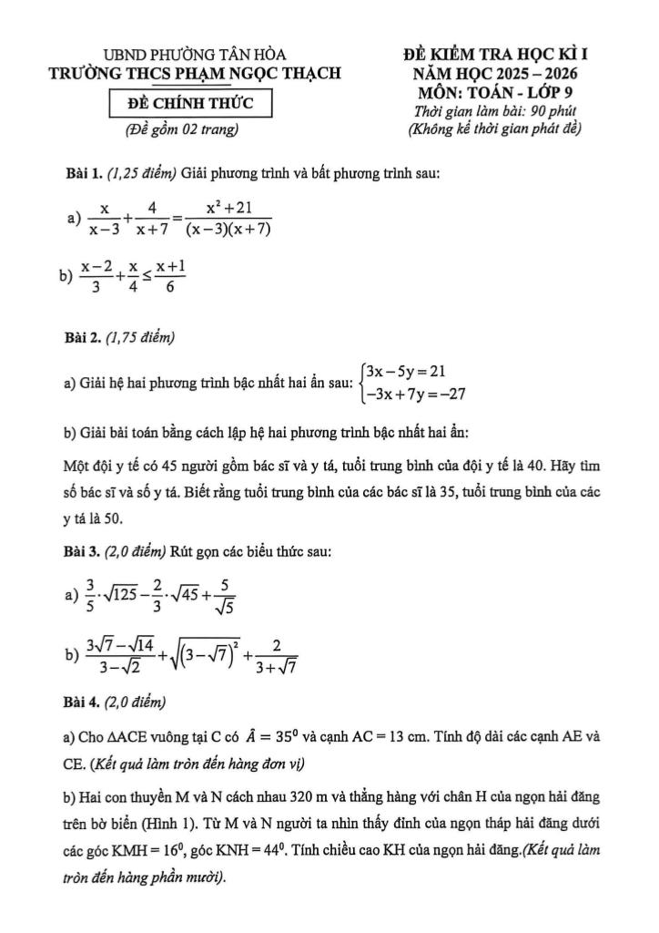Trích dẫn Đề học kì 1 Toán 9 năm 2025 – 2026 trường THCS Phạm Ngọc Thạch – TP HCM: