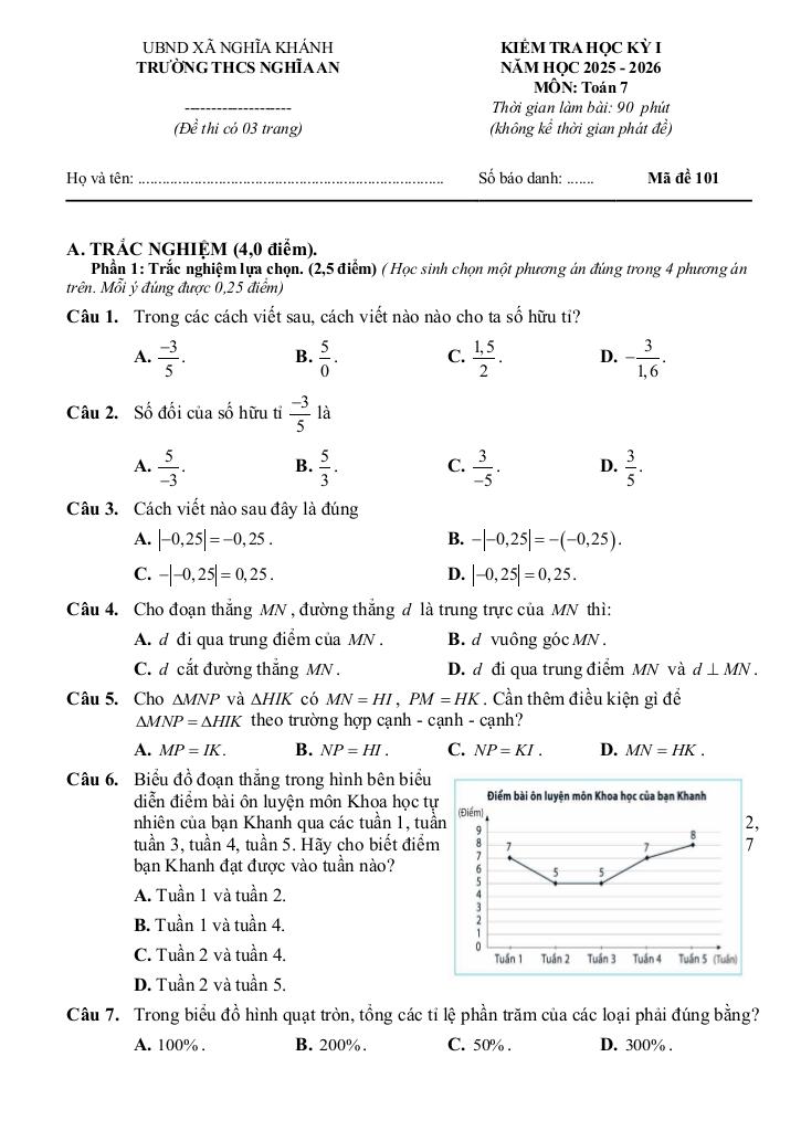 Trích dẫn Đề học kỳ 1 Toán 7 năm 2025 – 2026 trường THCS Nghĩa An – Nghệ An: