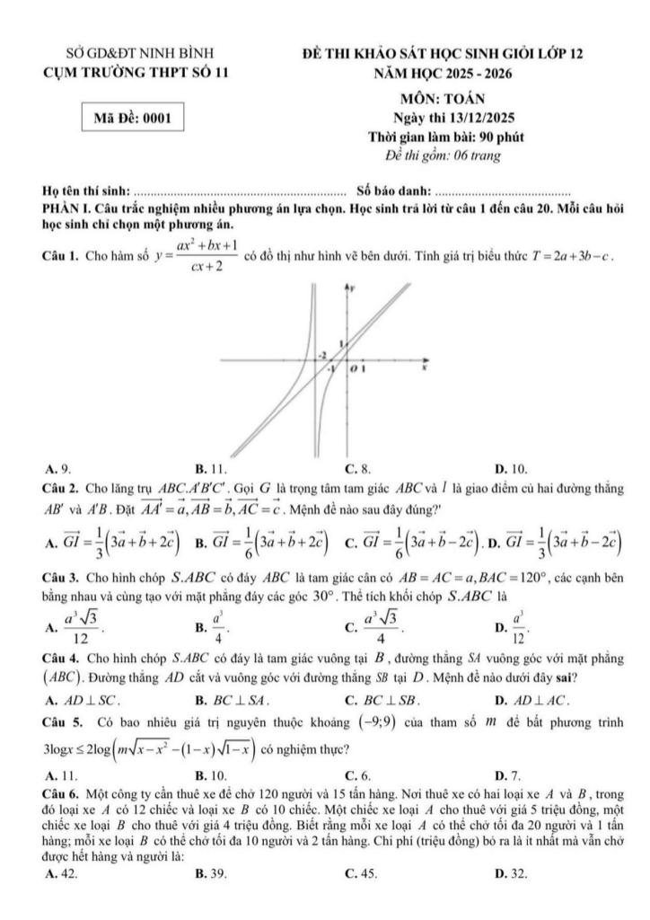Trích dẫn Đề khảo sát HSG Toán 12 năm 2025 – 2026 cụm THPT số 11 – Ninh Bình: