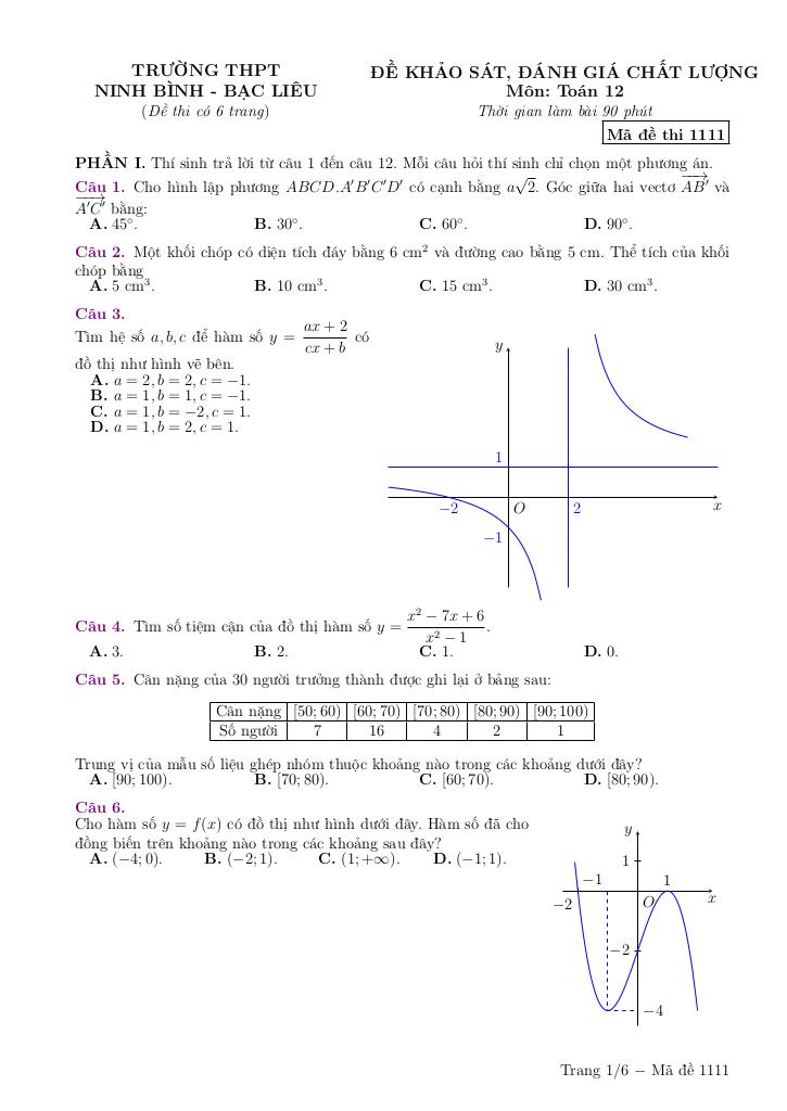 Trích dẫn Đề khảo sát Toán 12 năm 2025 – 2026 trường THPT Ninh Bình – Bạc Liêu – Ninh Bình: