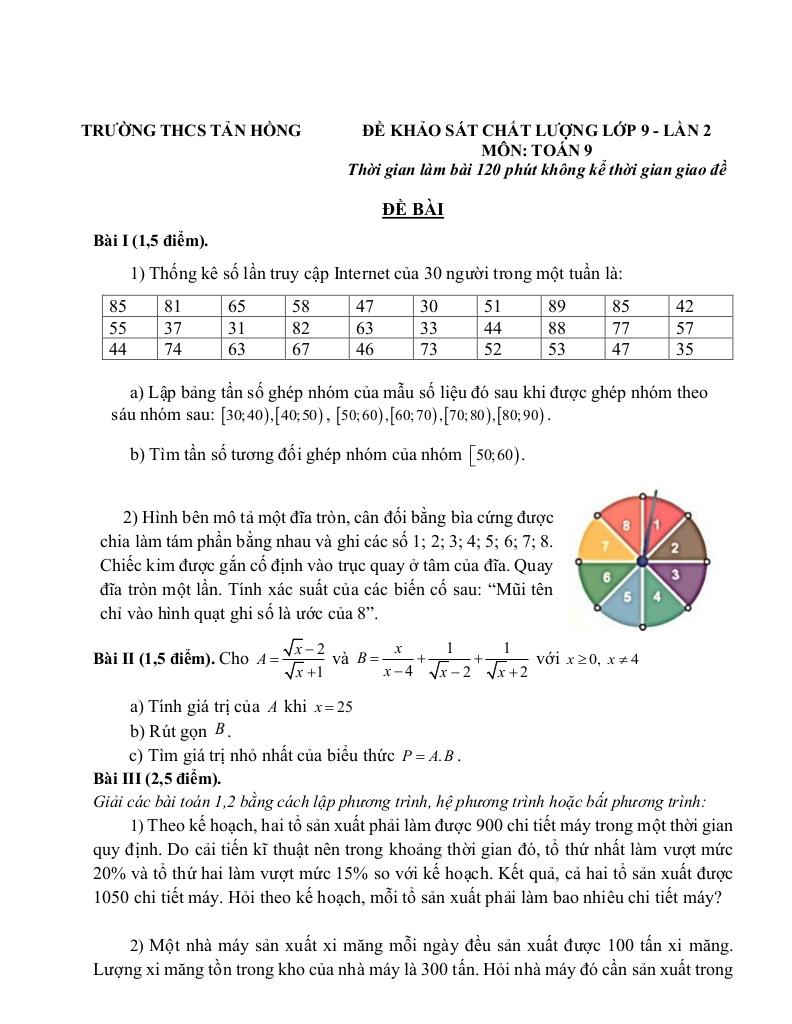Trích dẫn Đề khảo sát Toán 9 lần 2 năm 2025 – 2026 trường THCS Tản Hồng – Hà Nội: