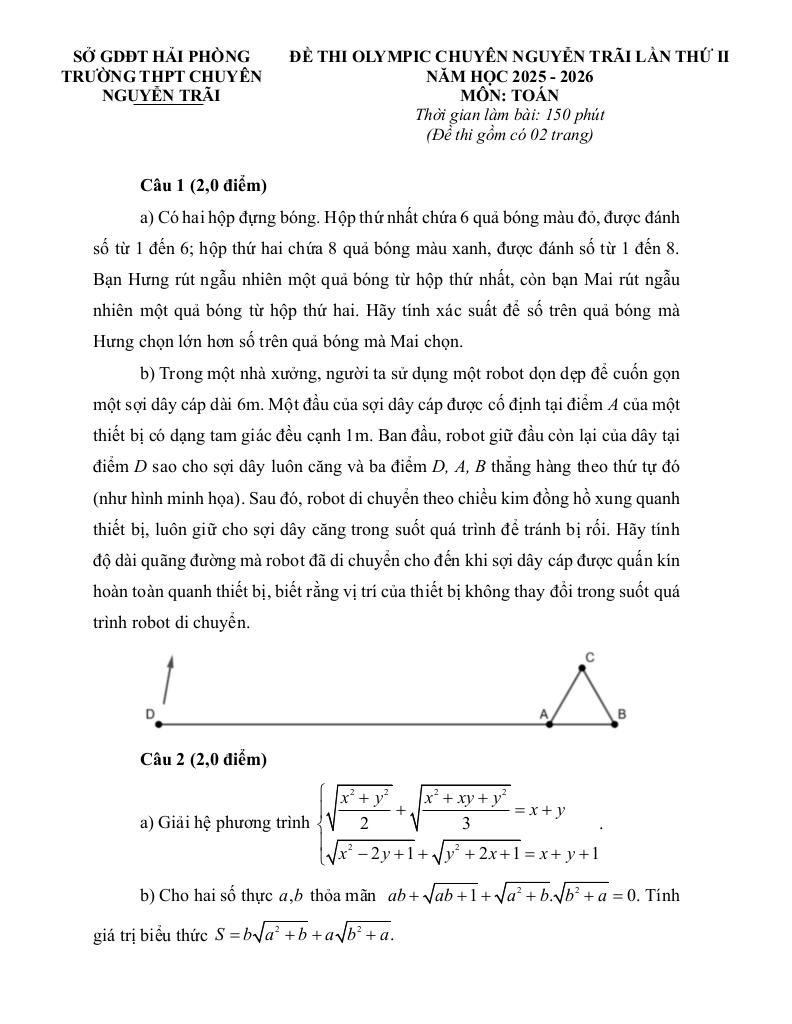 Trích dẫn Đề Olympic Toán THCS lần 2 năm 2025 – 2026 trường chuyên Nguyễn Trãi – Hải Phòng: