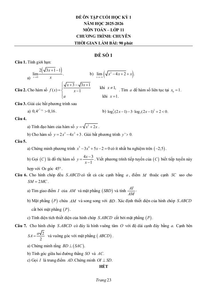 Bạn đang khám phá nội dung đề ôn tập ck1 toán 11 năm 2025 – 2026 trường chuyên lương văn chánh – đắk lắk trong chuyên mục Đề thi Toán lớp 11 trên nền tảng toán học. Được biên soạn chuyên sâu và bám sát chặt chẽ chương trình sách giáo khoa hiện hành, bộ bài tập toán thpt này cam kết tối ưu hóa toàn diện quá trình ôn luyện, củng cố kiến thức Toán lớp 11 cho học sinh THPT, thông qua phương pháp tiếp cận trực quan và mang lại hiệu quả học tập vượt trội, tạo nền tảng vững chắc cho các kỳ thi quan trọng và chương trình đại học.