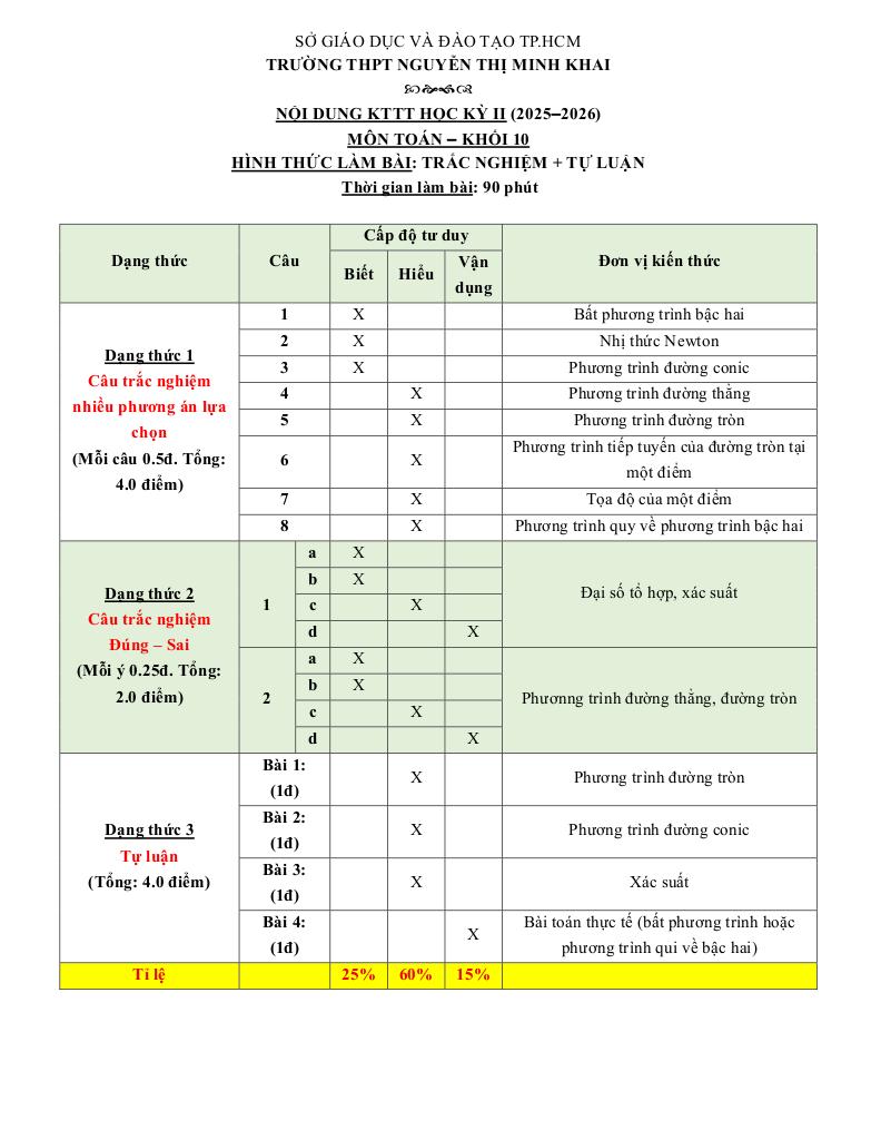 MonToan.com.vn giới thiệu đến quý thầy, cô giáo và các em học sinh đề ôn tập kiểm tra cuối học kỳ 2 môn Toán 10 năm học 2025 – 2026 trường THPT Nguyễn Thị Minh Khai, thành phố Hồ Chí Minh.
