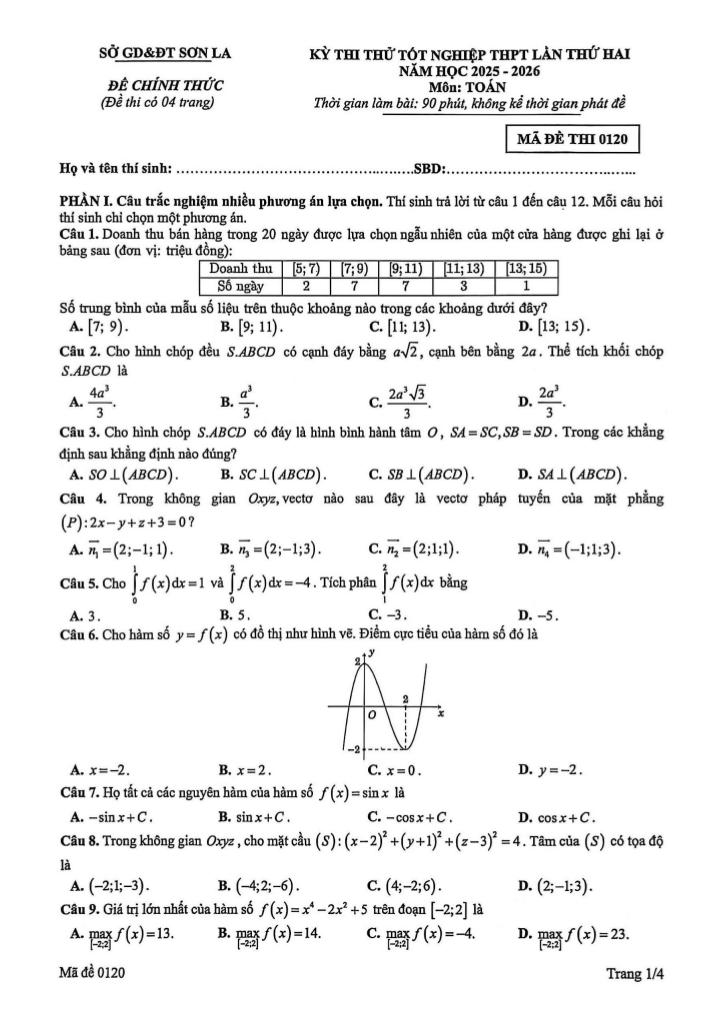 Trích dẫn Đề thi thử tốt nghiệp THPT 2026 môn Toán lần 2 sở GD&ĐT Sơn La: