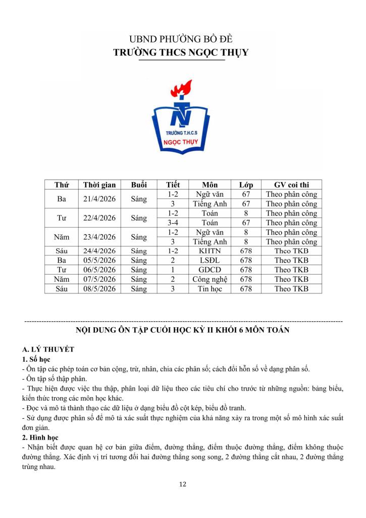 MonToan.com.vn giới thiệu đến quý thầy, cô giáo và các em học sinh đề cương hướng dẫn nội dung ôn tập cuối học kỳ 2 môn Toán 6 năm học 2025 – 2026 trường THCS Ngọc Thụy, phường Bồ Đề, thành phố Hà Nội.