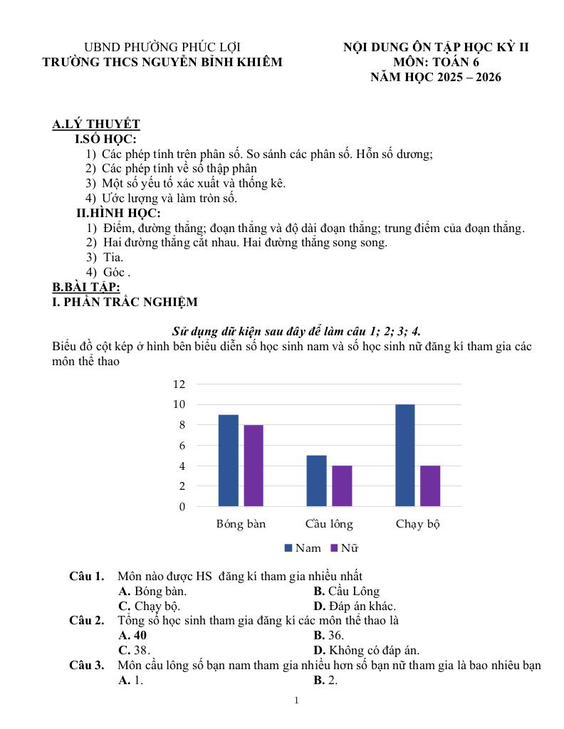 MonToan.com.vn giới thiệu đến quý thầy, cô giáo và các em học sinh đề cương hướng dẫn nội dung ôn tập kiểm tra cuối học kì 2 môn Toán 6 năm học 2025 – 2026 trường THCS Nguyễn Bỉnh Khiêm, phường Phúc Lợi, thành phố Hà Nội.