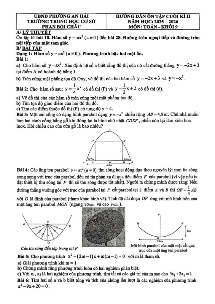 MonToan.com.vn giới thiệu đến quý thầy, cô giáo và các em học sinh đề cương hướng dẫn ôn tập cuối học kì 2 môn Toán 9 năm học 2025 – 2026 trường THCS Phan Bội Châu, phường An Hải, thành phố Đà Nẵng.