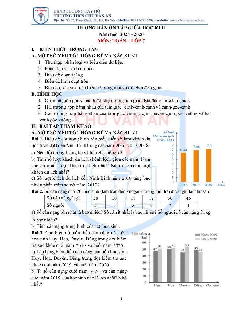 MonToan.com.vn giới thiệu đến quý thầy, cô giáo và các em học sinh đề cương hướng dẫn ôn tập giữa học kì 2 môn Toán 7 năm học 2025 – 2026 trường THCS Chu Văn An, phường Tây Hồ, thành phố Hà Nội.