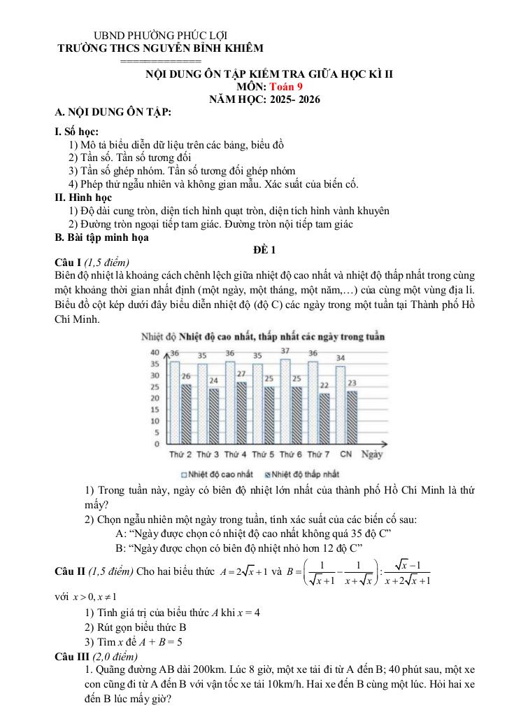MonToan.com.vn giới thiệu đến quý thầy, cô giáo và các em học sinh đề cương hướng dẫn nội dung ôn tập kiểm tra giữa học kì 2 môn Toán 9 năm học 2025 – 2026 trường THCS Nguyễn Bỉnh Khiêm, phường Phúc Lợi, thành phố Hà Nội.