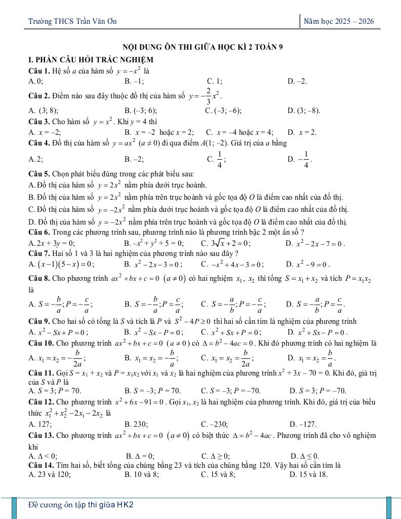 Bạn đang khám phá nội dung ôn tập giữa kì 2 toán 9 năm 2025 – 2026 trường thcs trần văn ơn – tp hcm trong chuyên mục sgk toán 9 trên nền tảng tài liệu toán. Được biên soạn chuyên sâu và bám sát chương trình sách giáo khoa hiện hành, bộ bài tập lý thuyết toán thcs này cam kết tối ưu hóa toàn diện quá trình ôn luyện, củng cố kiến thức Toán lớp 9 cho học sinh, đặc biệt là chuẩn bị cho các kỳ thi quan trọng, thông qua phương pháp tiếp cận trực quan và mang lại hiệu quả học tập vượt trội.