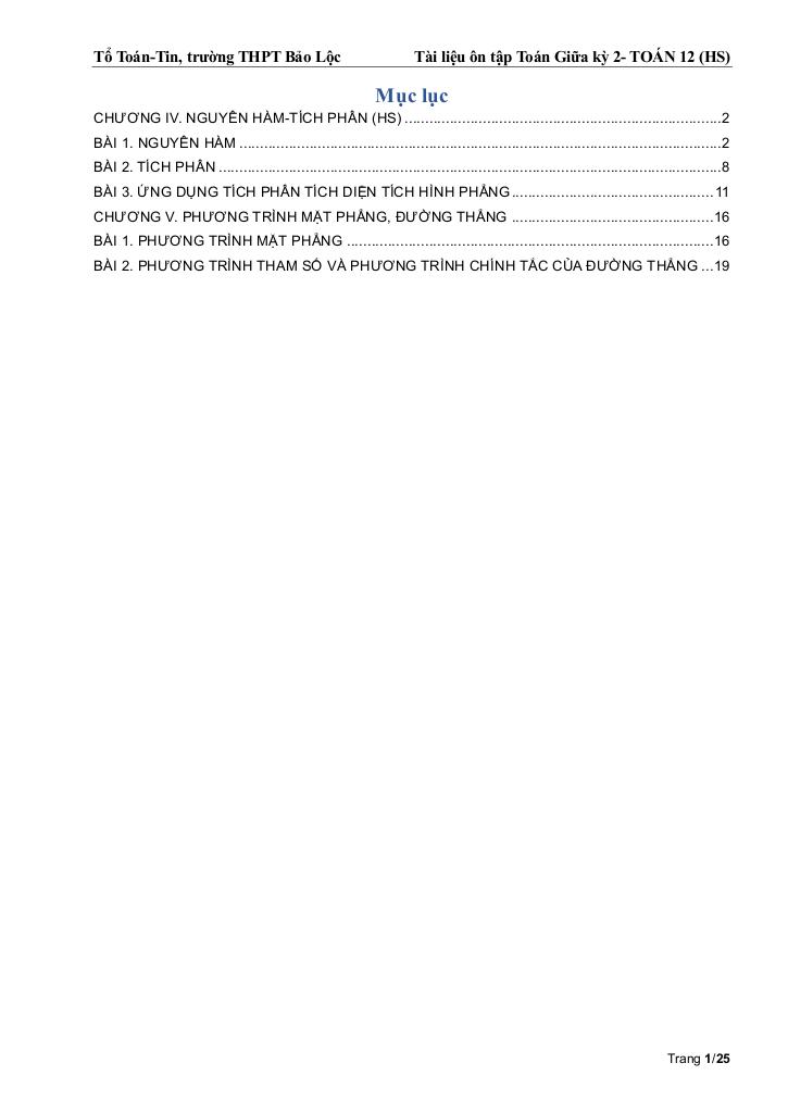 Quý thầy cô và học sinh đang tham khảo ôn tập toán 12 giữa kỳ 2 năm 2025 – 2026 trường thpt bảo lộc – lâm đồng, bộ đề thi được xây dựng bám sát chuẩn toán học cập nhật nhất. Cấu trúc đề bảo đảm độ phủ kiến thức đồng đều, mức độ câu hỏi được cân chỉnh từ nhận biết đến vận dụng cao, phù hợp kiểm tra toàn diện năng lực. Hãy khai thác triệt để tài liệu này để đánh giá chính xác trình độ hiện tại và tối ưu chiến lược luyện thi của bạn.